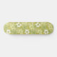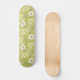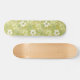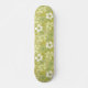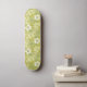Ce skateboard présente des fleurs et des feuilles dans les tons blanc, vert clair et jaune pâle.