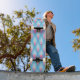 Skateboard Motif turquoise et rose de pétale