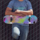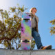Une explosion de marques multicolores tachées décalée par des traits de brosse noirs.