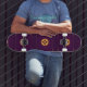 Emmenez votre jeu de skateboard au niveau supérieur avec ce skateboard unique et accrocheur avec l'arrière d'un jeu de cartes violet. Que vous soyez un pro chevronné ou que vous soyez juste en train de commencer, ce pont va tourner la tête et faire une déclaration dans les rues ou au skatepark.