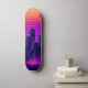 Skateboard Neon Sunset Cityscape rétro-futuriste