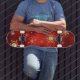 Skateboard Noël Golden Snowflakes sur Arrière - plan rouge