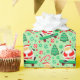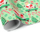 Emballage cadeau de vacances de skateboard créatif mettant en vedette un skateboarder Père Noël amusant entouré de bonbons de Noël et de biscuits.