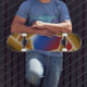Skateboard Noir Bleu Rouge Or Ombre Abyss Art Abstrait