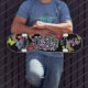 SKATEBOARD NOIR FLEURS ET BUTTERFLIS
