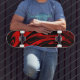 Les couleurs du rouge et du noir créent un look audacieux et enflammé sur ce skateboard. Un effet de marbrage cool créé à partir d'une technique de superposition numérique. Des tourbillons ondulés s'affichent à l'intérieur des vagues. Ce design inspiré de la plage est moderne et amusant.