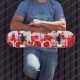 Skateboard Nom personnalisé Motif sur bandes diagonales rouge