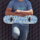 Skateboard Oiseaux en fleurs de cerisier bleu sur bleu