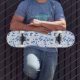 Skateboard Oiseaux en fleurs de cerisiers Bleu Imprimer