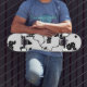 Skateboard Oiseaux Motifs noirs et blancs sur les fleurs de c