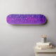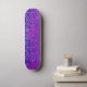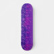 Planche à roulettes avec fausse parties scintillant violette et rose qui coule contre un arrière - plan violet.