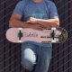 Blush Rose Parties scintillant Girly Sparkles Nom Personnalisé Skateboard. Parties scintillant filles skate aussi! Panneau rose vif avec parties scintillant simulée rose, blanc et noir goutte-à-goutte girly skateboard. Le nom du patineur dans la typographie manuscrite moderne sur l'équipement extérieur personnalisé de la parties scintillant rose de cette fille. N'oubliez pas de compléter votre cadeau en ajoutant l'ensemble Camions, Roues et Grip Tape à votre panier ! Step by Step Inspiration Series disponible exclusivement sur Zazzle à l'adresse zazzle.com/store/KrisHarty, conçu par le designer international Kris Harty. © 2022 Kris Harty Pas à pas Conception inspirationnelle