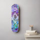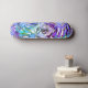 Ce skateboard feuille tropical à la parties scintillant violette et dorée porte son nom en calligraphie manuscrite et en feuilles de monastères hawaïens qui ont reçu un filtre violet et bleu. Parfait pour les amateurs de plage ! Photographie des feuilles de la monstère d'Hawaï et design © par TK Goforth et signé par l'artiste, tous droits réservés.