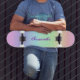 Skateboard Pastel Arc-en-ciel Aesthétique Nom pourpre