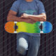 Ce skateboard de qualité est présenté avec un imprimé motif d'art abstrait dans les couleurs de l'arc-en-ciel. Acheter tel quel ou customiser cet objet à votre goût. Image stock 123freevectors.com
