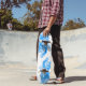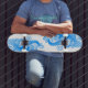 Skateboard illustré dans une impression graphique d'onde couleur bleue. Couleurs Bleu et Blanc Acheter tel quel ou customiser cet article à votre goût. Image stock