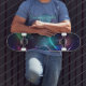 Skateboard affiché dans une impression graphique abstraite multicolore. Couleurs Multi Acheter tel quel ou customiser cet article à votre goût. Image stock