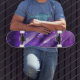 Ce skateboard de qualité est présenté avec un imprimé motif d'art abstrait en couleurs violet multi. Acheter tel quel ou customiser cet objet à votre goût. Image stock 123freevectors.com
