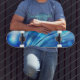 Ce skateboard de qualité est présenté avec un imprimé motif d'art abstrait aux couleurs bleu. Acheter tel quel ou customiser cet objet à votre goût. Image stock 123freevectors.com