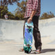 Le skateboard est présenté dans une impression abstraite multicolore. Acheter tel quel ou customiser cet objet à votre goût. Stock Imprimer freepik.com