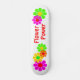 Des fleurs colorées et classiques des années 60 entourent les mots "Flower Power" Grand skateboard à thème rétro.