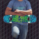 Impression vintage tropicale inspirée des chemises aloha des années 40 et 50. Un mélange coloré passe à travers les fleurs d'hibiscus du haut au bas de la planche. Adaptable à un large assortiment de formes et de tailles de planches. Ces dessins sont présentés de plusieurs couleurs.