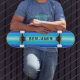 Laissez-vous tenter par le skatepark avec ce skateboard personnalisé audacieux et élégant. Dotée d'un design à rayures bleu cool et personnalisée avec votre propre nom en lettrage noir élégant, cette carte combine style et individualité. Parfait pour les skateurs qui veulent rendre leur équipement unique, ou comme un cadeau customisé réfléchi pour les amis et la famille.