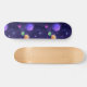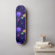 Illustration d'une scène spatiale avec des planètes, des étoiles et des comètes, dressée contre un arrière - plan bleu foncé. Les planètes sont représentées en différentes couleurs, dont le violet, le jaune, le vert et le bleu, chacune avec des textures et des détails uniques. Les étoiles sont petites et blanches, éparpillées dans toute la scène, tandis que les comètes laissent des traces de lumière qui parsèment le ciel. Le style général est fantaisiste et ludique, avec une attention portée aux couleurs vives et aux formes simples. L'illustration est probablement destinée aux enfants ou à ceux qui aiment l'art spatial léger. Art numérique.