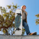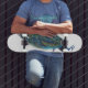 Skateboard Pavillon bleu avec de belles plumes de queue