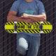 Skateboard en design cool et drôle de panneau d'avertissement. "MIND THE STEP" Texte personnalisable.