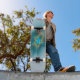 Skateboard Petite Beauté Moderne Bleu Or Fractal Art Flower