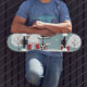 Skateboard Pingouin Bébé Gris Mignonne En Neige D'Hiver