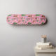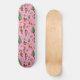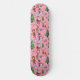 Christmas-themed pattern featuring Santa Claus, reindeer, snowmen, elves, Christmas trees, candy canes, and snowflakes on a pink background