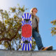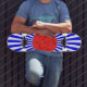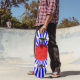 skateboard cool avec boule rouge et bue rayures arrière - plan.