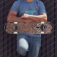 Conception de planche à roulettes inspirée des anciens boucliers tribaux de la tribu Maori en Nouvelle-Guinée.