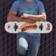 Qui ne veut pas ce hot-dog heureux sous vos pieds pendant que vous patinez en bas de la rue ? Ce rappel heureux pour continuer à sourire est une excellente addition pour le collecteur d'art de planche à roulettes. Ayez votre propre weiner-mobile vous-actionné personnel !