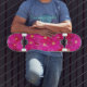 Planche à roulettes rose de fleurs