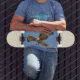 Une chasse de faucon Rouge-Coupée la queue par cool est sur cette planche à roulettes.