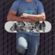 Version skateboard de l'oeuvre d'art "Real-Czech" avec figures et objets abstraits en noir et blanc. Il n'y a pas de sens à chercher mais on peut le trouver dans chaque coin.