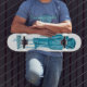 Cette plate-forme de planche à roulettes de Strangeco comporte le garçon bleu par Reuben grossier