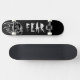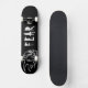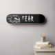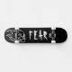 Plate-forme noire de planche à roulettes de crainte avec le crâne flamboyant blanc