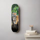 La patineta presenta un diseño inspirado en un poderoso cazador, específicamente un tigre de Bengala. La patineta tiene ilustraciones, gráficos y colores que representan la imagen de un tigre de Bengala, un felino majestuoso y feroz. La elección de este diseño evoca la fuerza, la agilidad y la belleza asociadas con los tigres, lo que proporciona un aspecto visualmente impactante y emocionante a la patineta. Este tipo de diseño no solo contribuiría a la estética de la patineta, sino que también despierta la imaginación y el interés de quienes la utilicen, agregando un elemento temático y distintivo al objeto.
