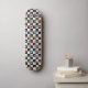 Une couverture à motif damier noir et blanc tendance avec arc-en-ciel de coeurs colorés donne à ce jeu de skateboard une ambiance amusante.
