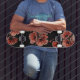 Skateboard Red Poppies Flowers Black