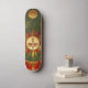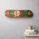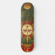 Une face de soleil avec des rayons rouge et or portant la couronne d'or se levant sur les montagnes vertes