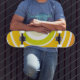skateboard de design rétro en vert et orange