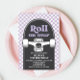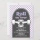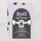 Invitation de skateboard Birthday avec chèque violet et skateboard.