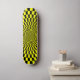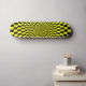 Un design de style Op Art circulaire à deux tons qui est composé de cercles de rayons, chacun décalé pour créer un motif alternatif.