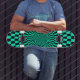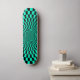 Un design de style Op Art circulaire à deux tons qui est composé de cercles de rayons, chacun décalé pour créer un motif alternatif.