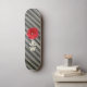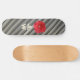 Une fleur d'Hibiscus rouge audacieuse sur un skateboard élégant et sophistiqué avec des rayures monochromatiques modernes dans des tons de gris clair personnalisées avec Initial(s). C'est une photographie botanique originale de JLW_Photography.